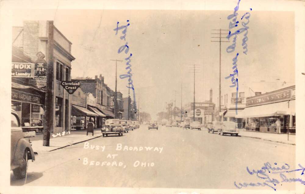 Bedford Ohio Broadway Street Scene Business District Real Photo PC AA106588