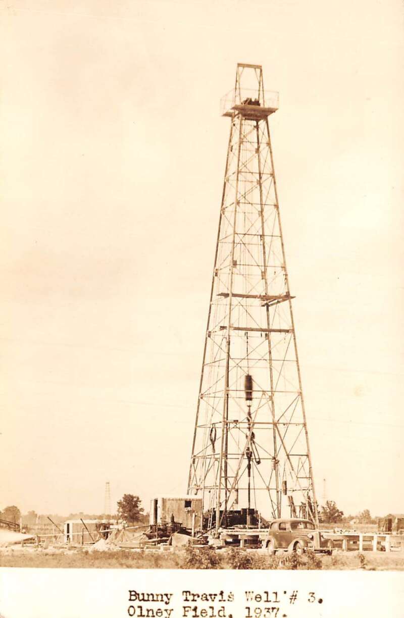 Olney Illinois Oil Field Bunny Travis Well Real Photo Postcard AA106590