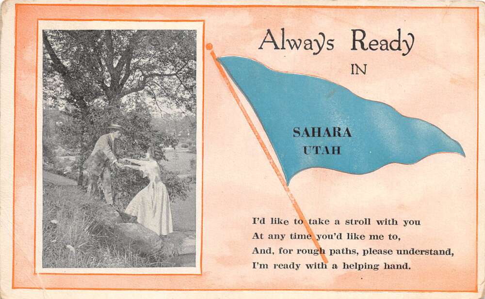 Sahara Utah Romance Greetings Pennant Flag Vintage Postcard AA106666