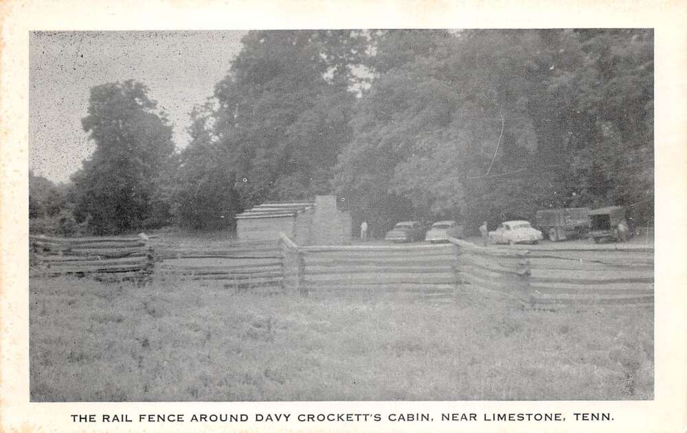 Limestone Tennessee Davy Crocketts Cabin Rail Fence Vintage Postcard AA106677