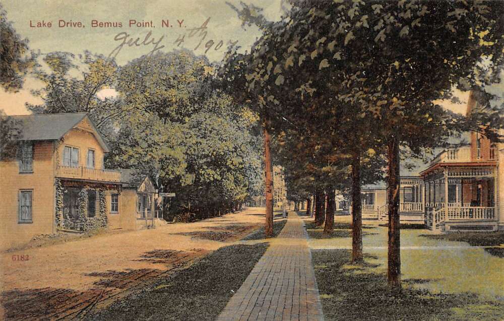 Bemus Point New York Lake Drive, Color Lithograph Vintage Postcard U16578