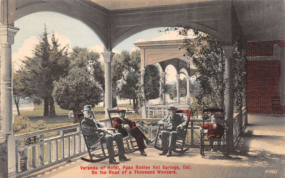 Paso Robles Hot Springs California Veranda of Hotel, Color Lithograph PC U16581