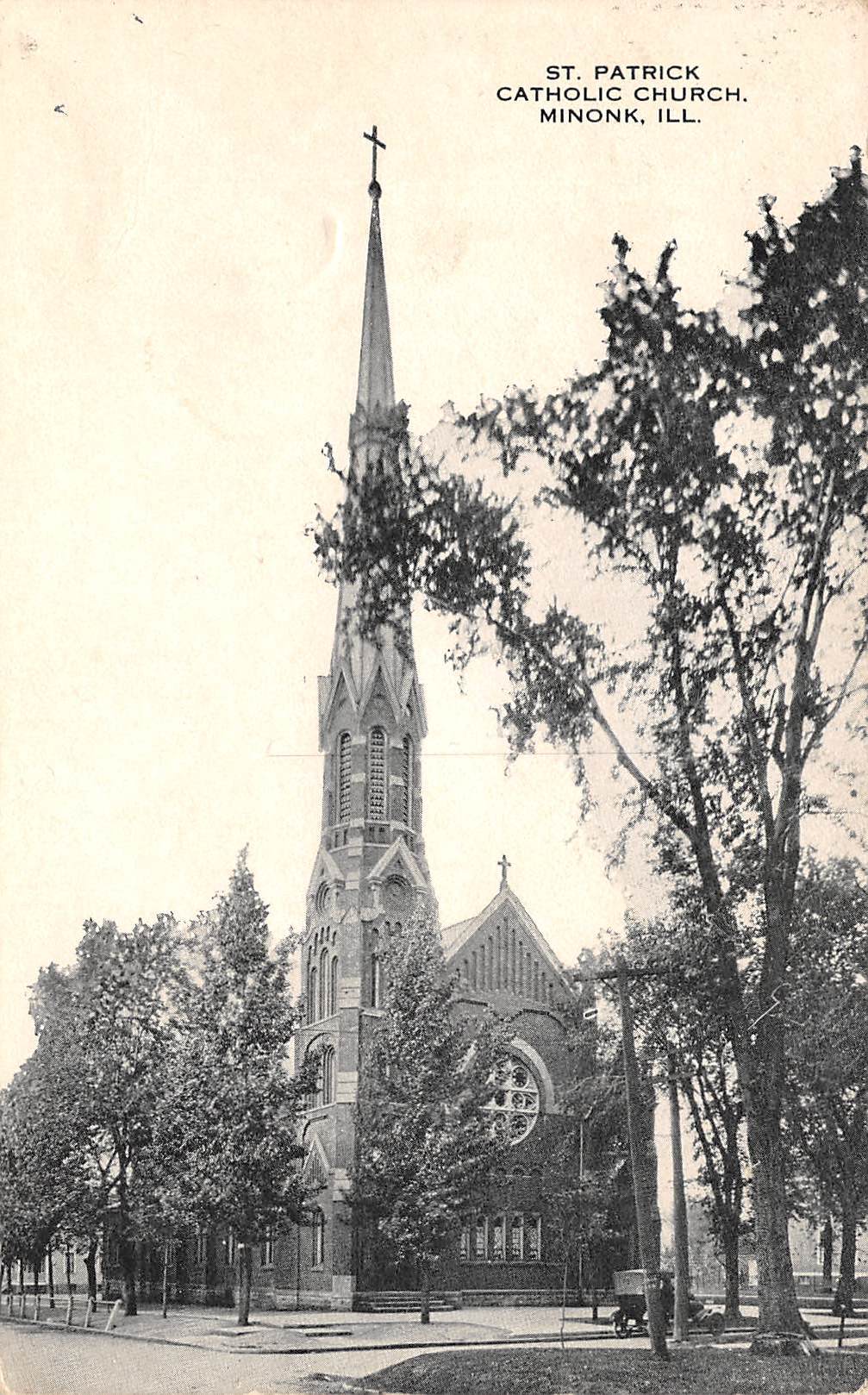 Minonk Illinois St. Patrick Catholic Church, B/W Lithograph Vintage PC U16589