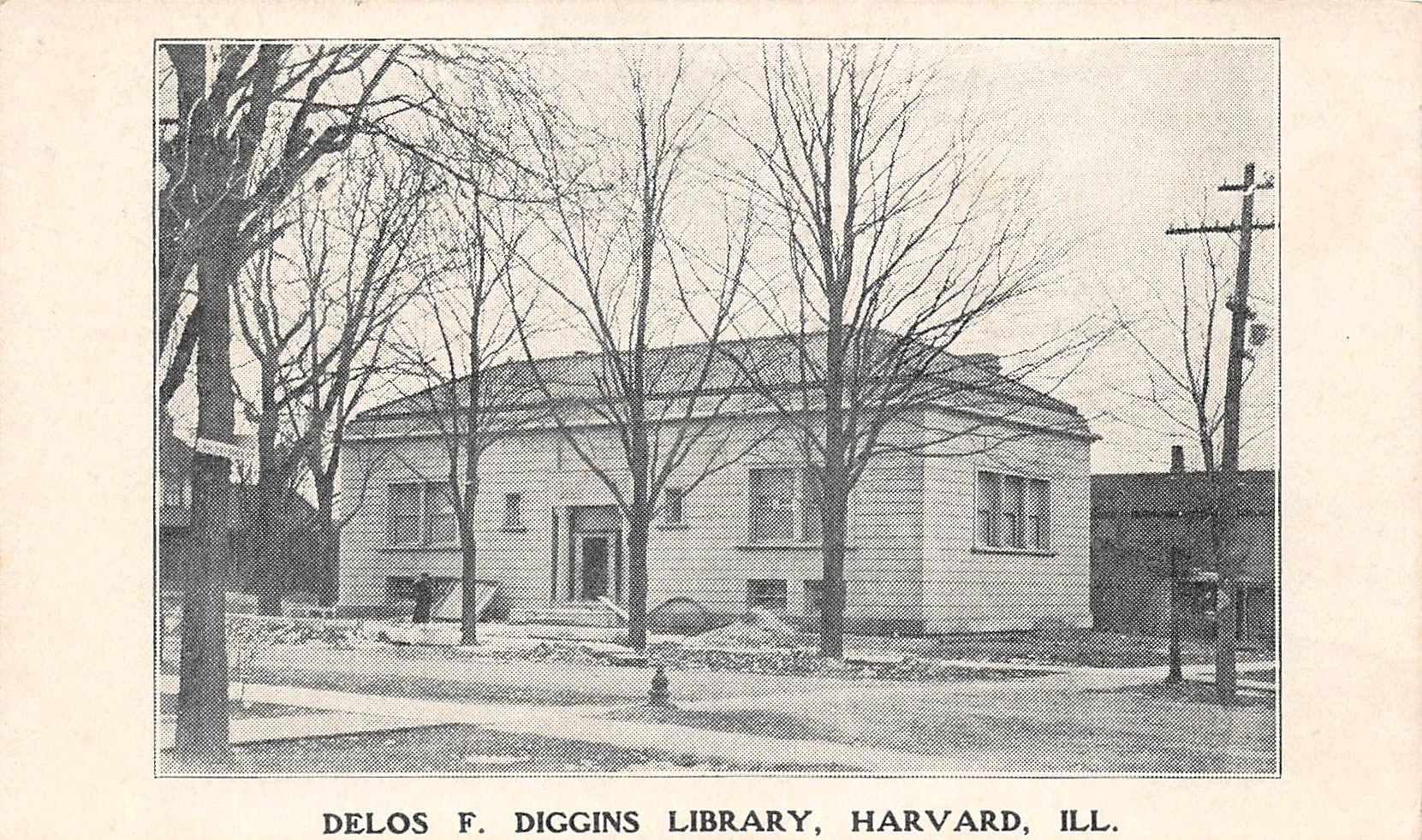 Harvard Illinois Delos F. Diggins Library, Private Mailing Card Vintage U16593