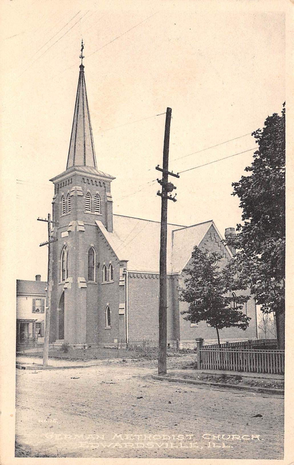 Edwardsville Illinois German Methodist Church, B/W Lithograph Vintage PC U16594