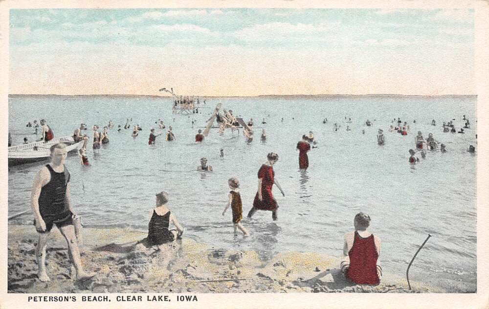 Clear Lake Iowa Peterson’s Beach, White Border Vintage Postcard U17205