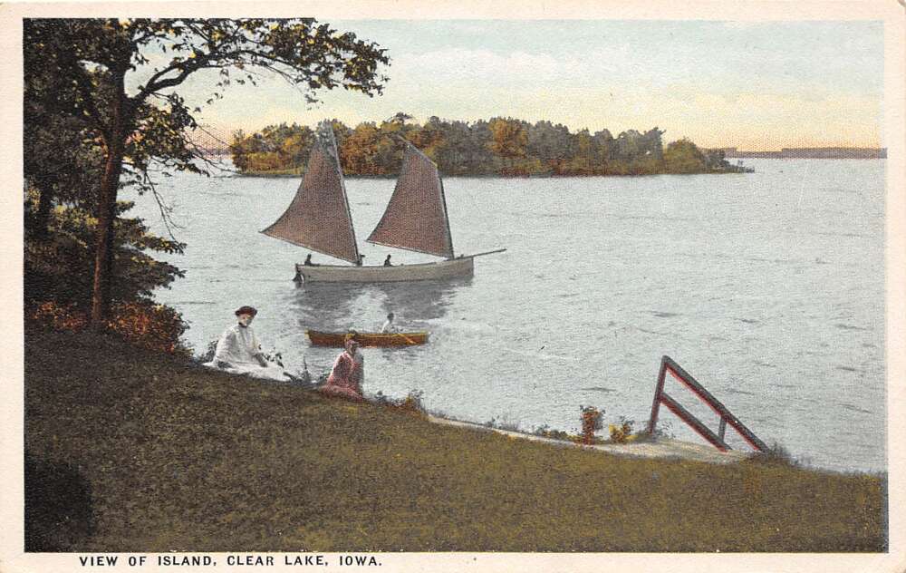 Clear Lake Iowa View Of Island, White Border Vintage Postcard U17206