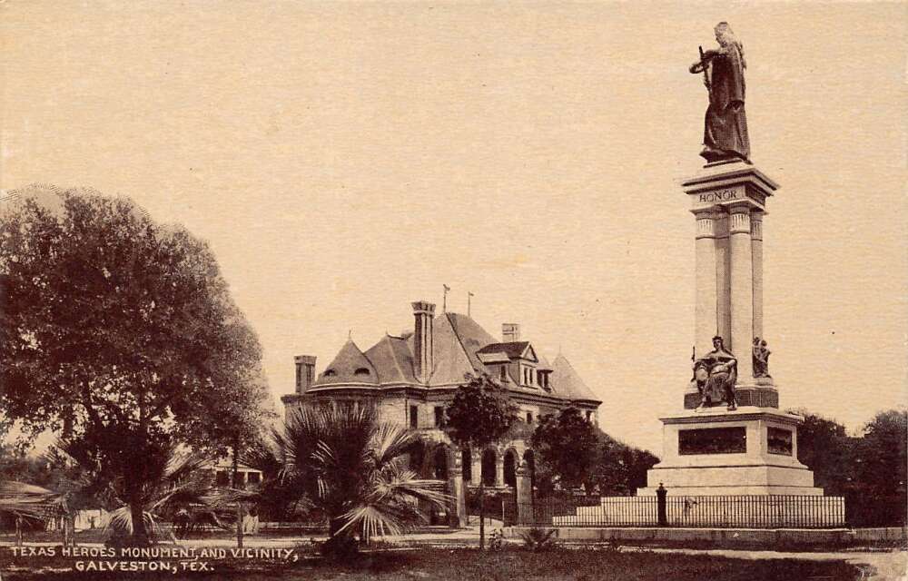 Galveston Texas Heroes Monument & Vicinity, Vintage Postcard U17207