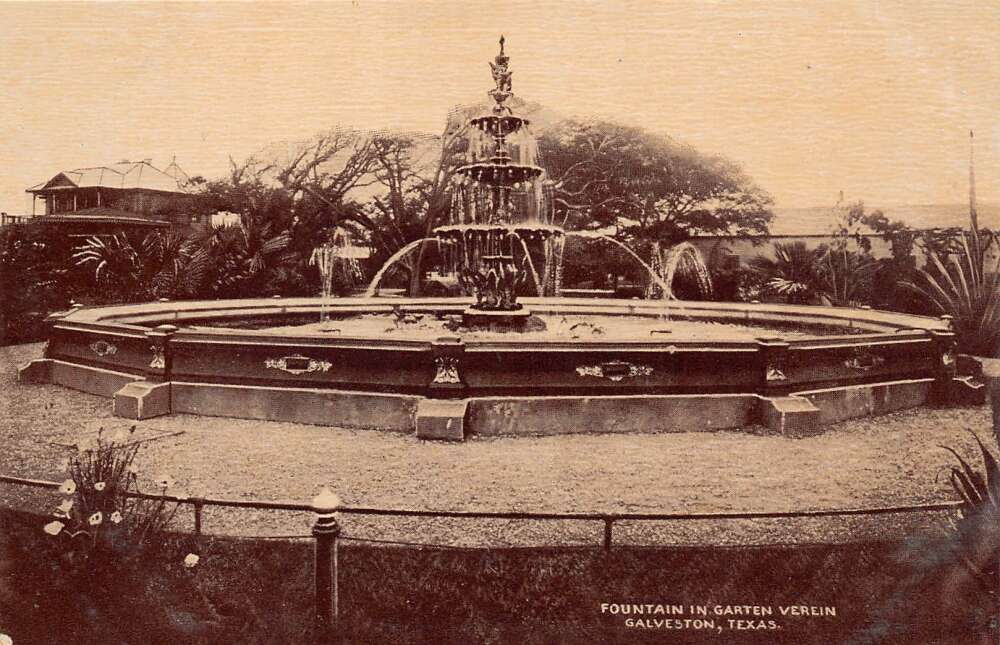 Galveston Texas Fountain In Garden Verein, Sepia Tone Lithograph, PC U17208