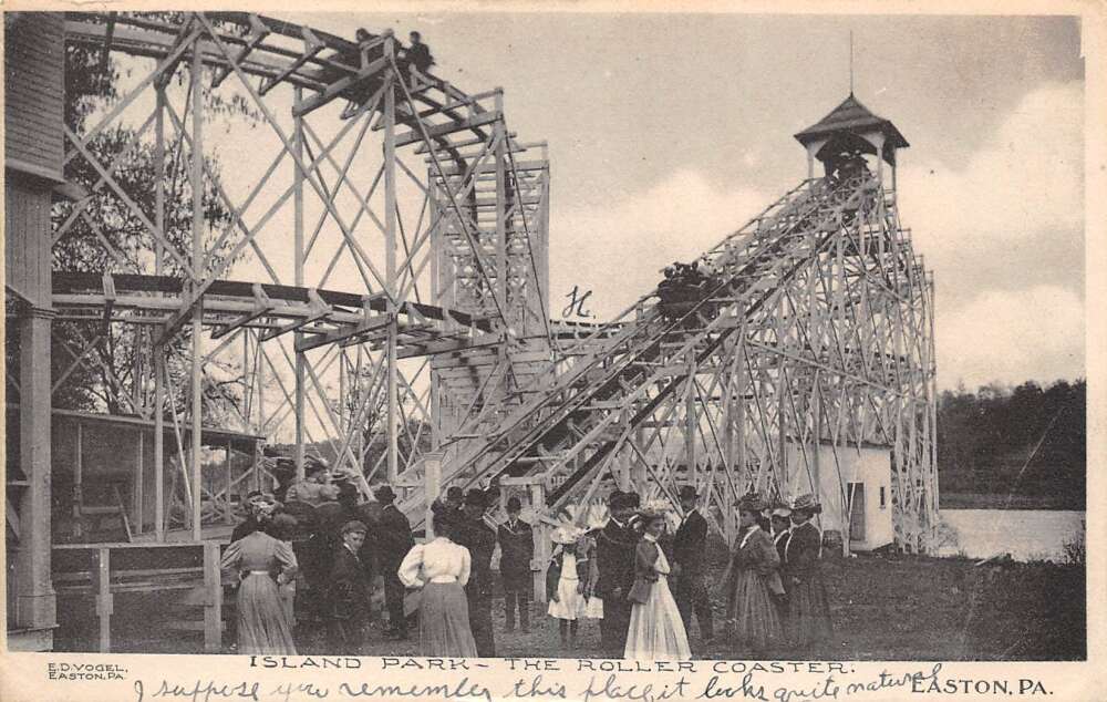 Easton Pennsylvania Island Park, Roller Coaster, B/W Lithograph Postcard U17211