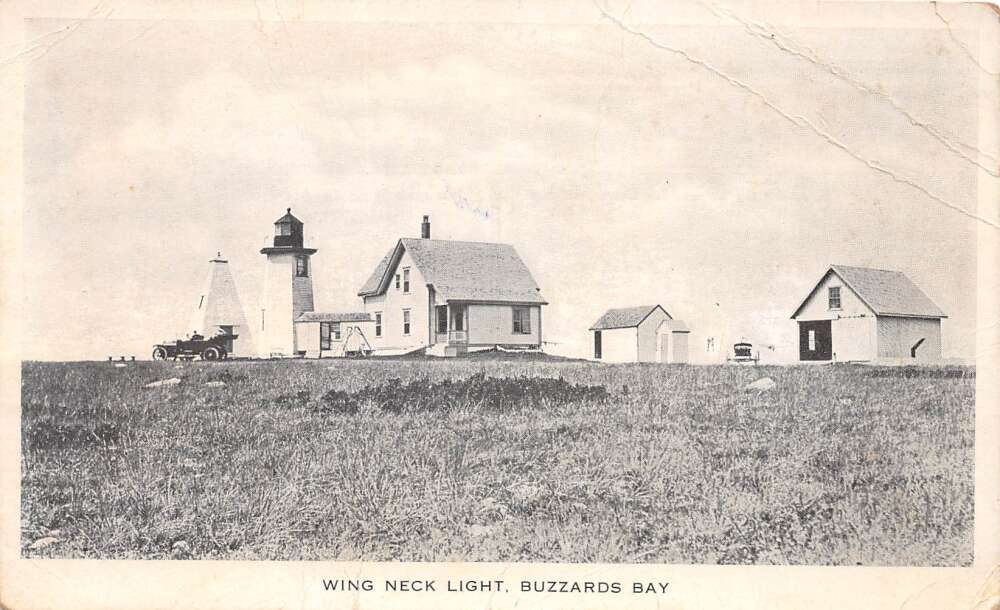 Buzzards Bay Massachusetts Wing Neck Light House, B/W Lithograph PC U17215