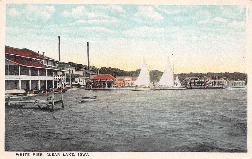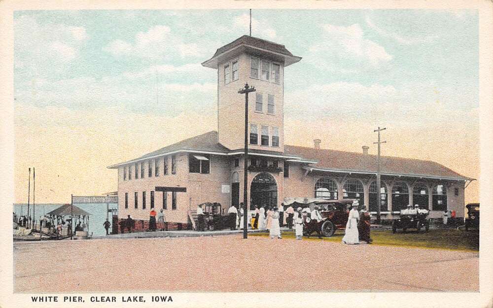 Clear Lake Iowa White Pier, White Border Vintage Postcard U17216