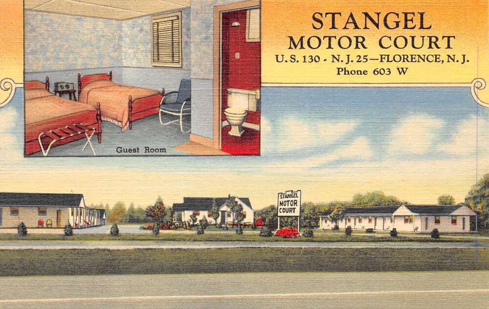Florence New Jersey Stangel Motor Court, Multi-View Linen Vintage PC U12613