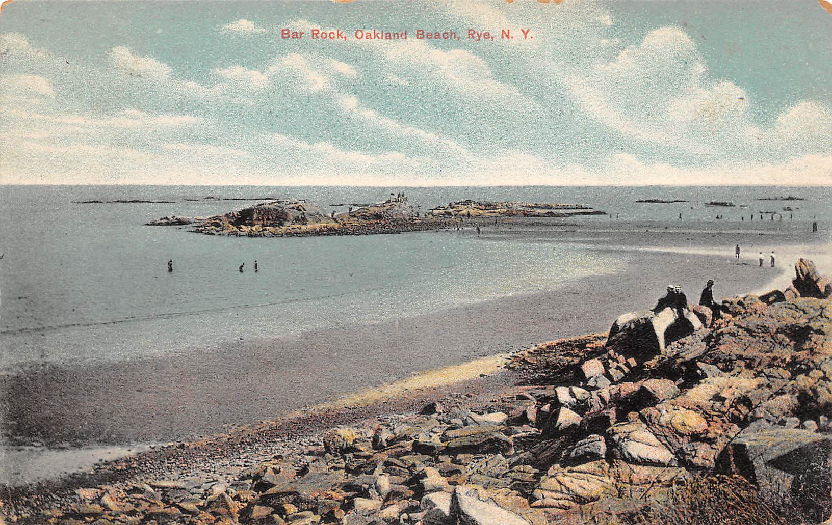 Rye New York Bar Rock, Oakland Beach, Color Lithograph Vintage Postcard U12185