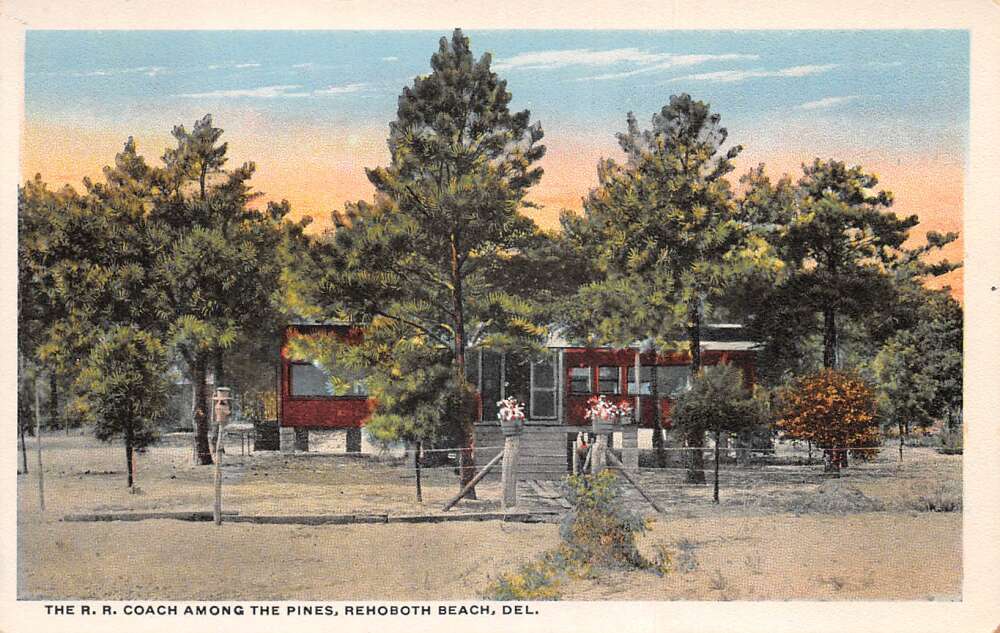 Rehoboth Beach Delaware Railroad Coach Among the Pines Postcard AA111012
