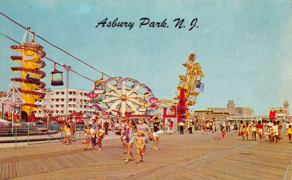 Asbury Park New Jersey Boardwalk Amusement Park Rides Vintage Postcard AA111020