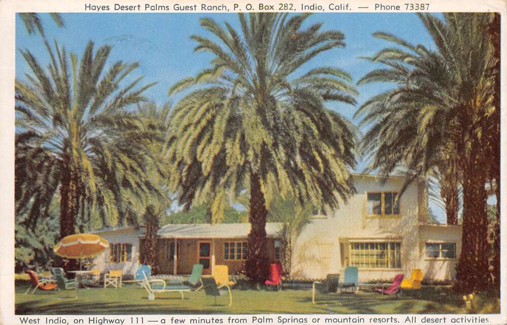 Indio California Hayes Desert Palms Guest Ranch Vintage Postcard AA111028