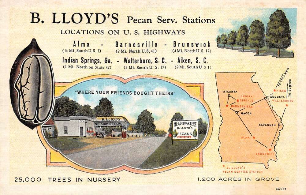 Georgia B. Lloyds Pecan Service Stations Highway Map Vintage Postcard AA111500