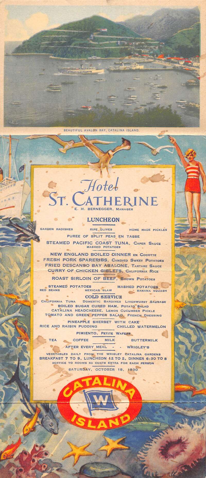 Catalina Island California Hotel St Catherine Luncheon Menu Fold Out PC AA111501