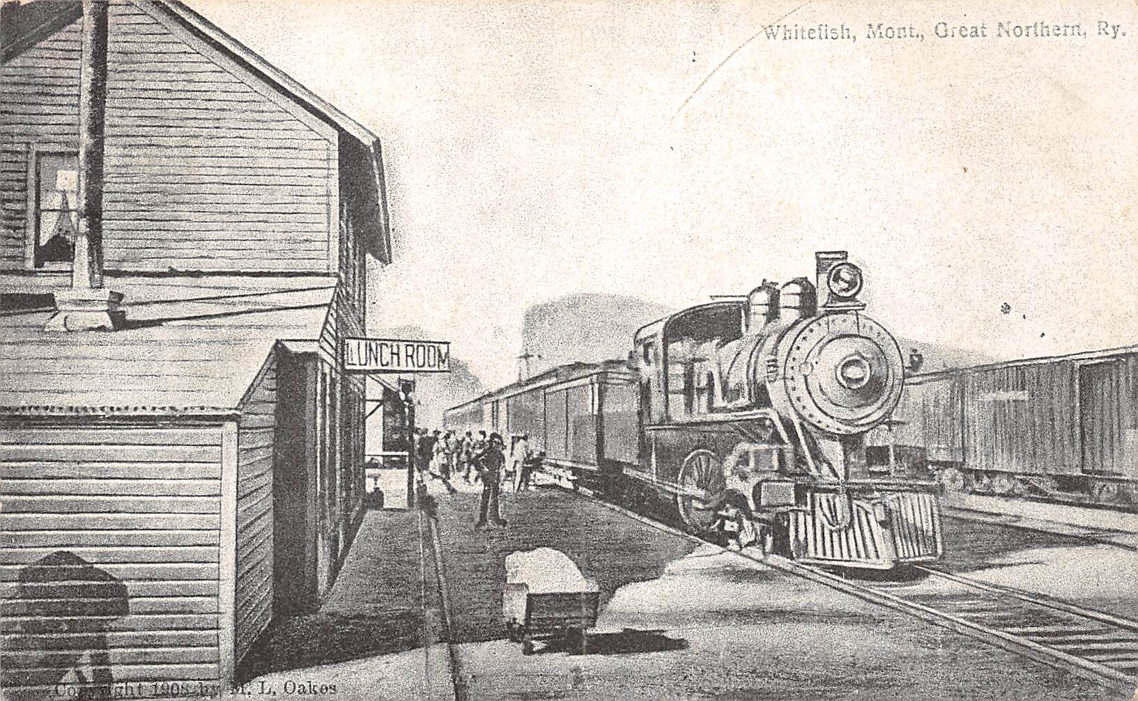 Whitefish Montana Great Northern Railroad, B/W Lithograph, Vintage PC U27012