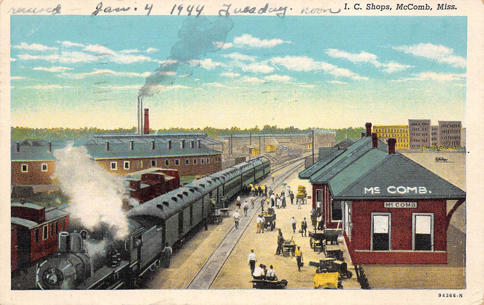 McComb Mississippi I.C. Shops, Train Depot, White Border, Vintage PC U27014