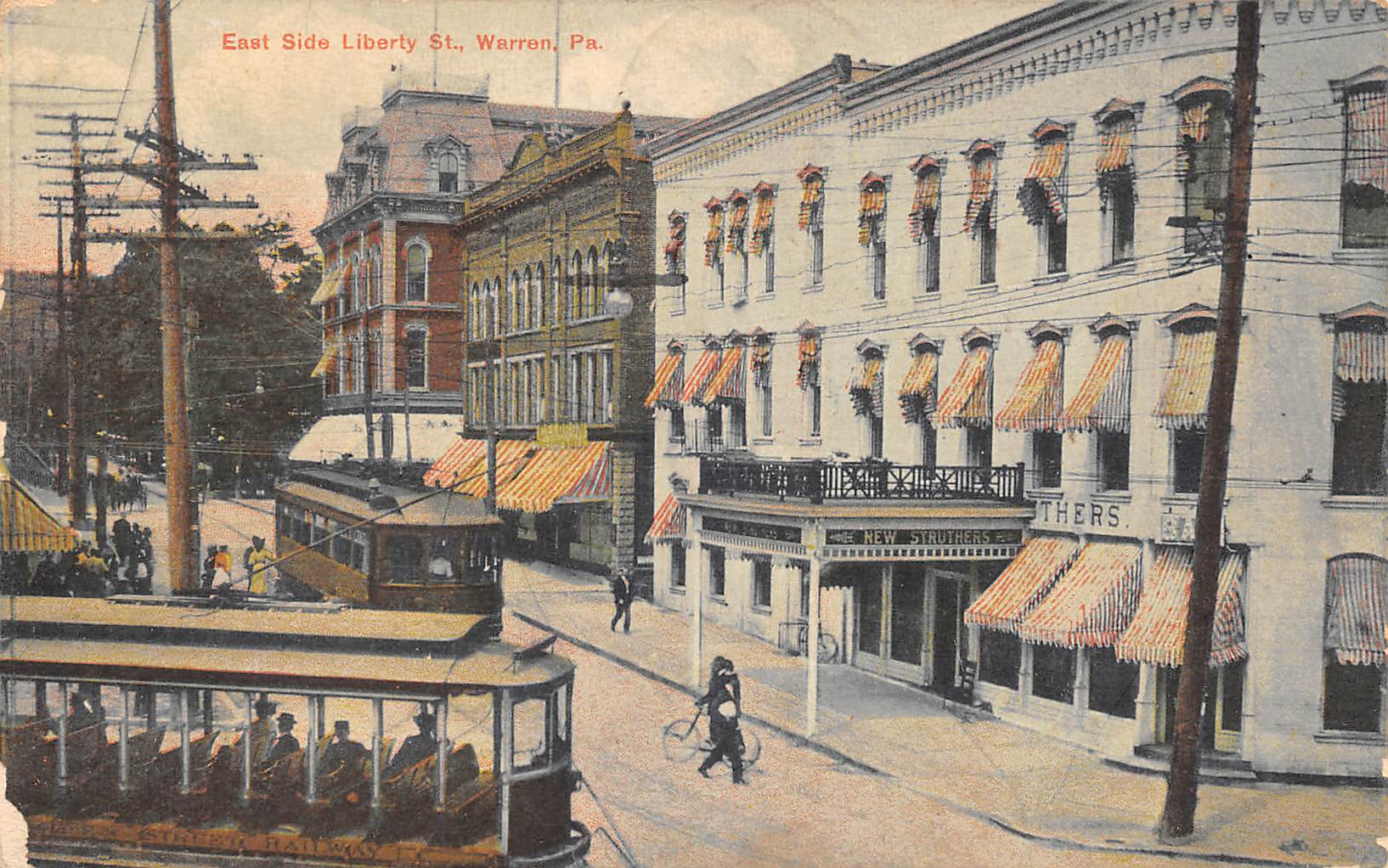 Warren Pennsylvania East Side Liberty St., Trolleys Shown, Vintage PC U27019