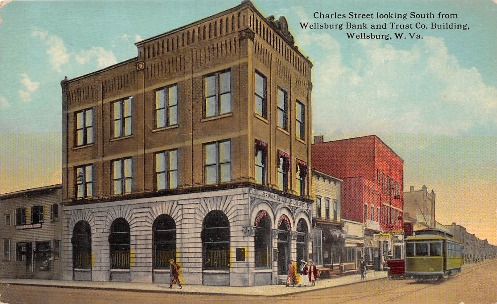 Wellsburg West Virginia Charles St., Looking S., Trolley, Vintage PC U27020