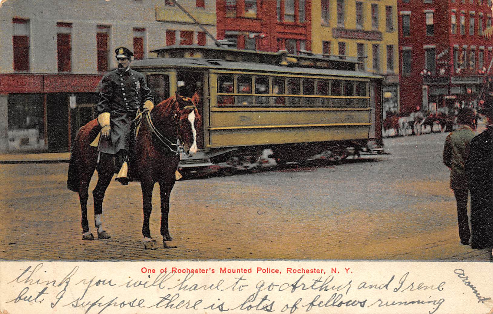 Rochester New York Mounted Police, Trolley Car, Vintage Postcard U27026