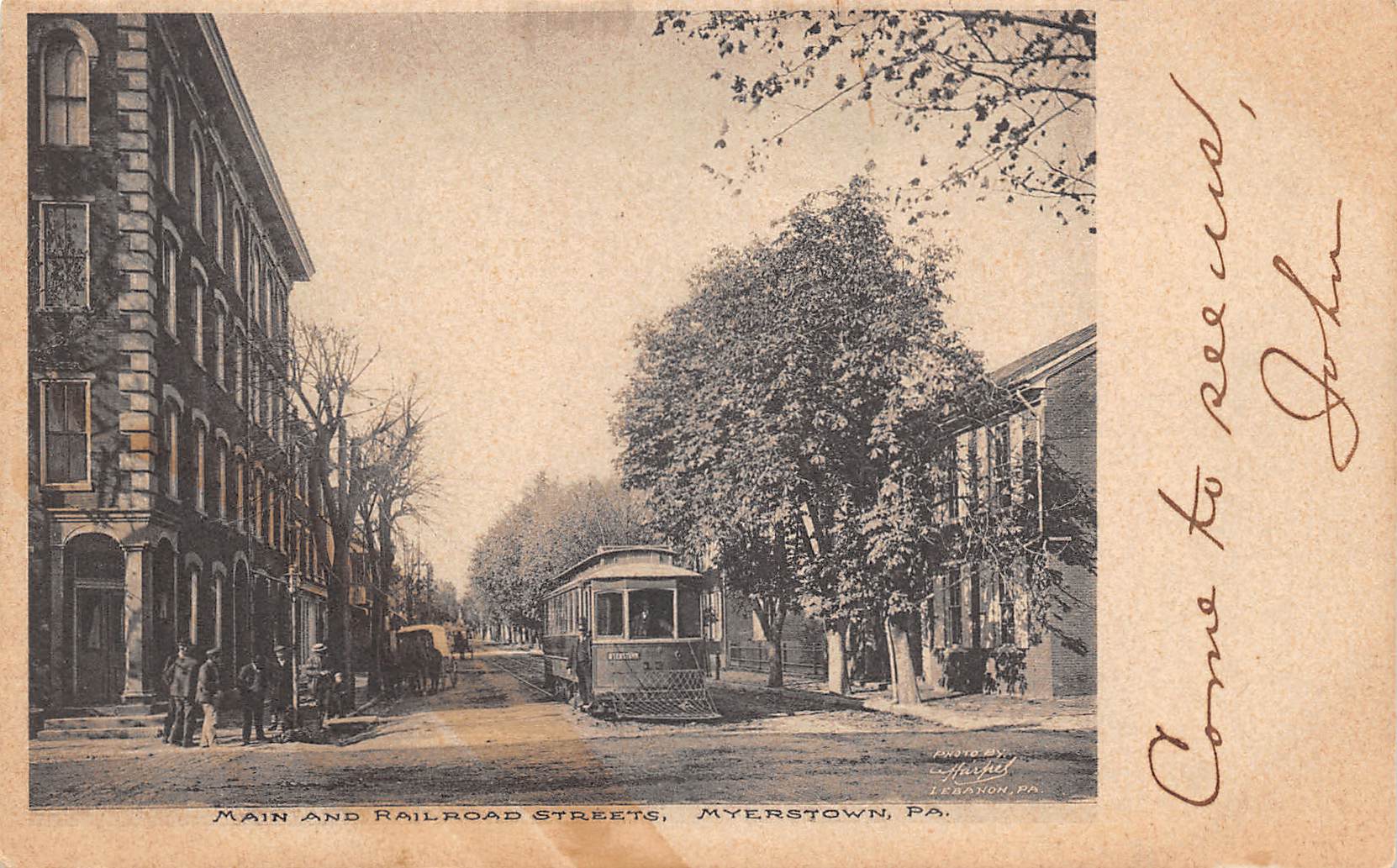 Myerstown Pennsylvania Main & Railroad Streets, Trolley, Vintage PC U27027