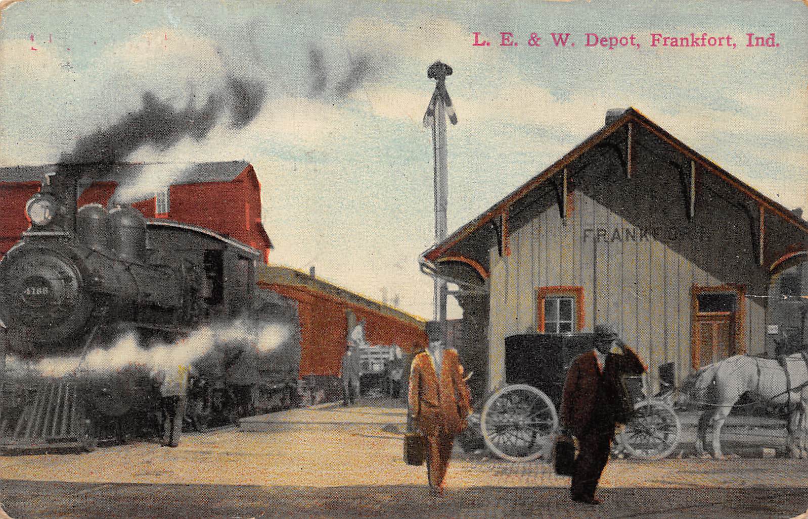 Frankfort Indiana L.E. & W. Depot, Color Lithograph, Vintage Postcard U27029