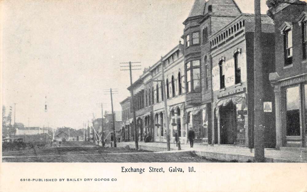 Galva Illinois Exchange Street Vintage Postcard AA110989