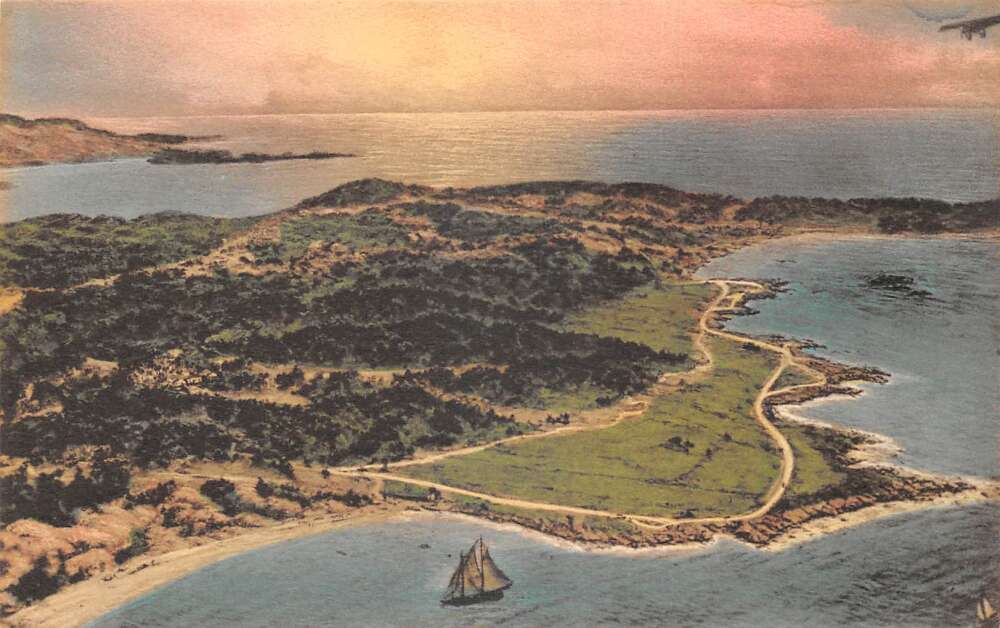 Pebble Beach California Airplane View Hand Colored Vintage Postcard AA112868