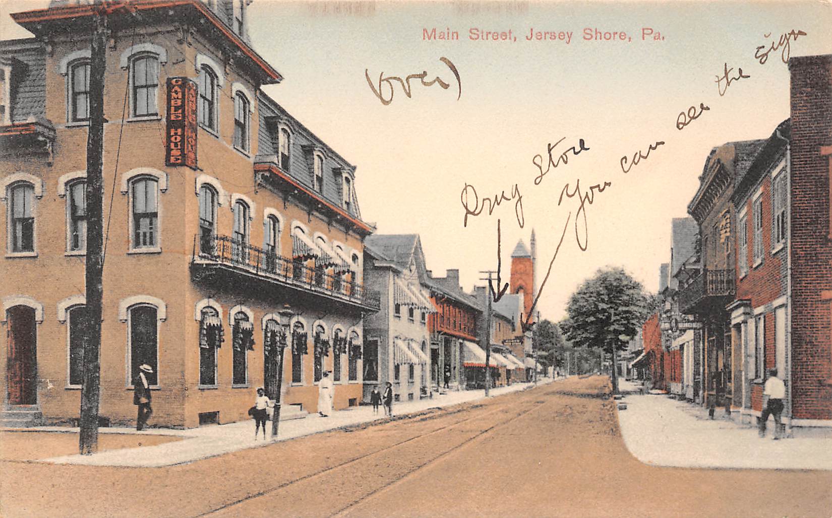 Jersey Shore Pennsylvania Main Street, Color Lithograph Vintage Postcard U12643