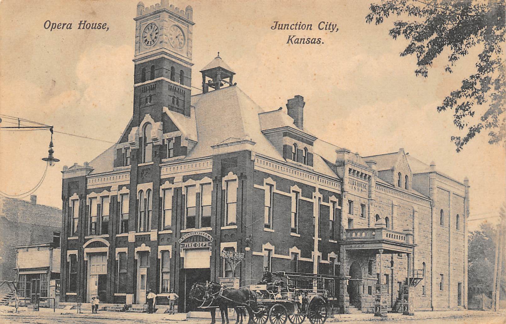 Junction City Kansas Opera House, Fire Department, Vintage Postcard U12650