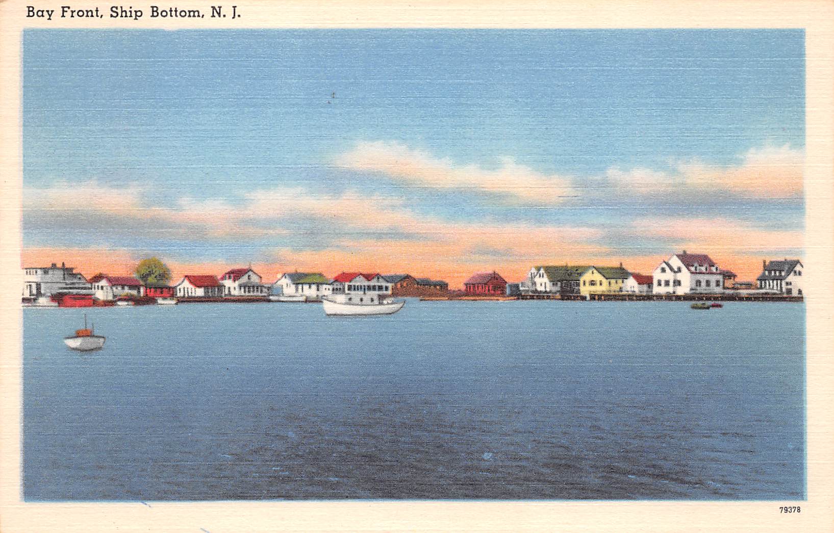 Ship Bottom New Jersey Bay Front, Color Linen, White Border Vintage PC U12654