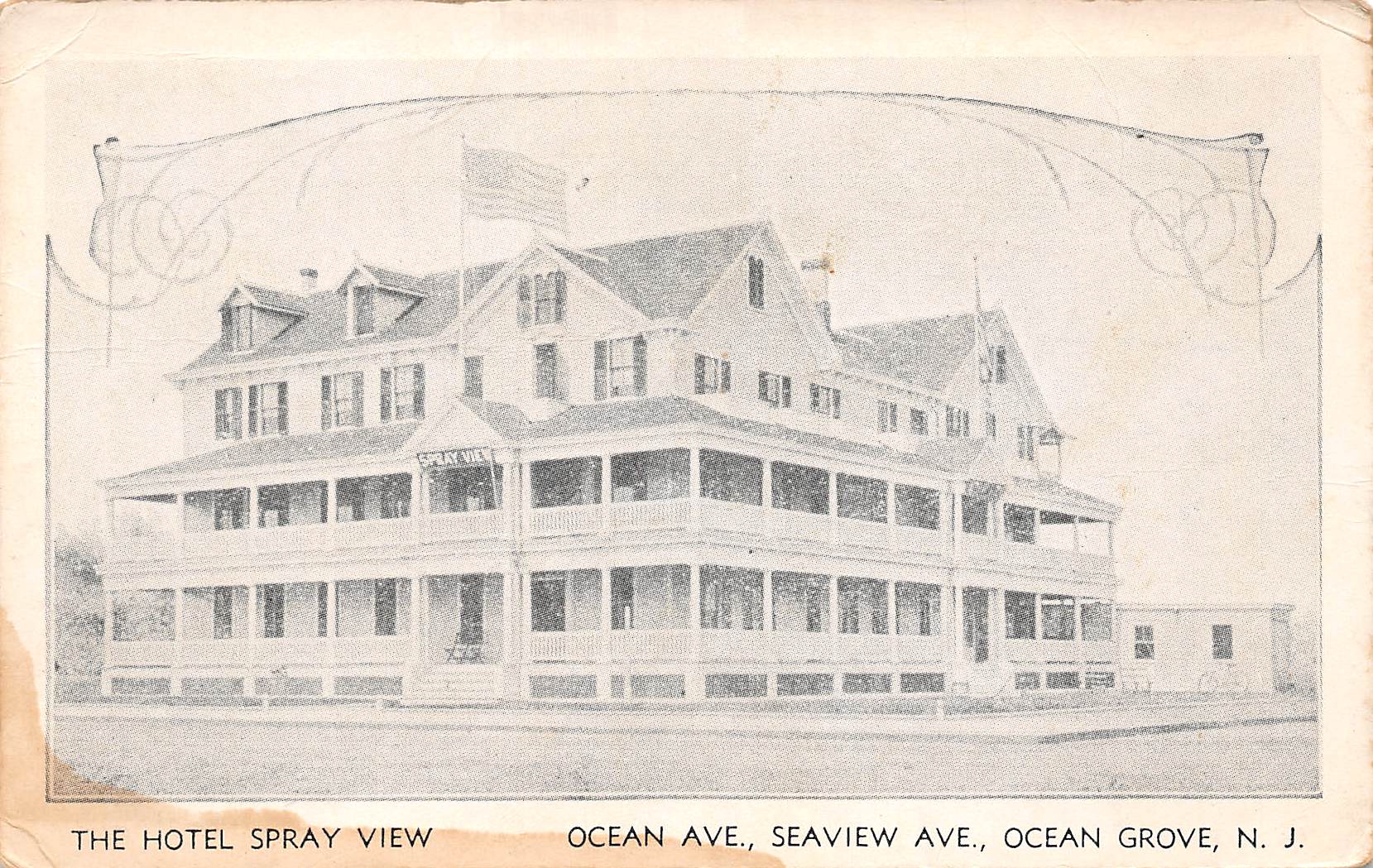 Ocean Grove New Jersey The Hotel Spray View, B/W Photo Print Vintage PC U12655