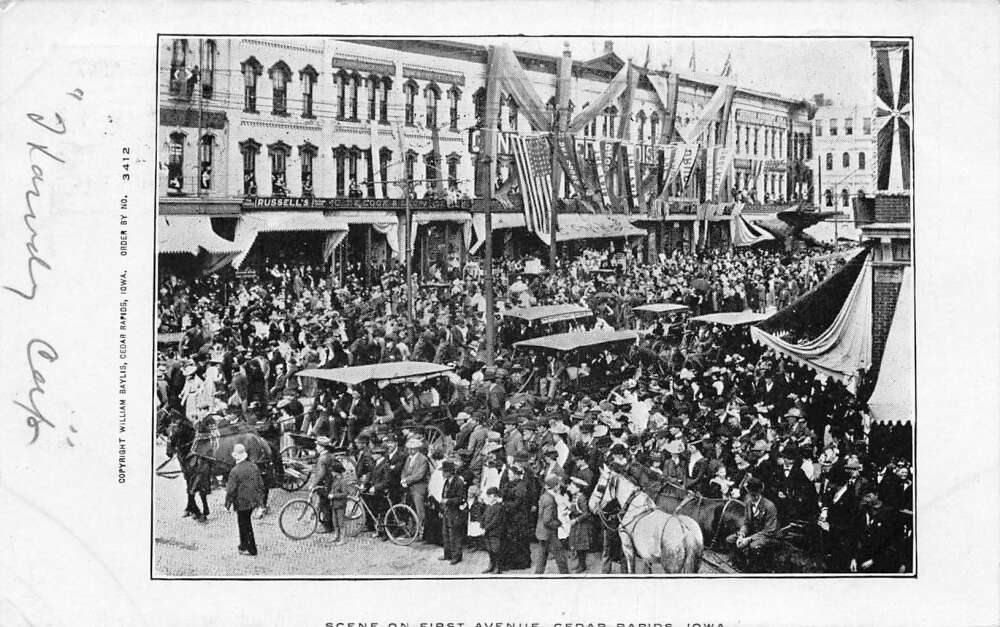 Cedar Rapids Iowa First Avenue Busy Day Street Scene Vintage Postcard AA73235