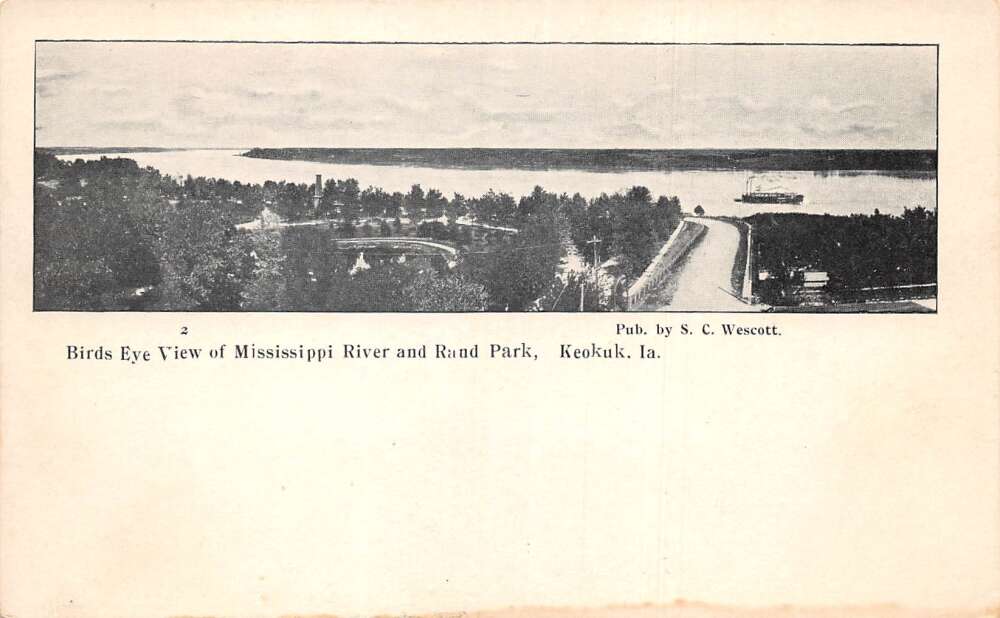 Keokuk Iowa Mississippi River and Rand Park Vintage Postcard AA73246
