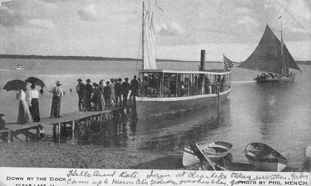 Clear Lake Iowa Ship at Dock Vintage Postcard AA73247