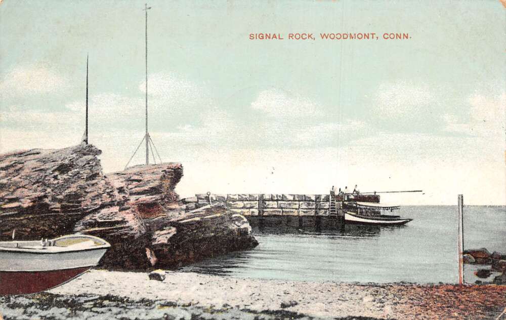Woodmont Connecticut Signal Rock, Color Lithograph Vintage Postcard U12247