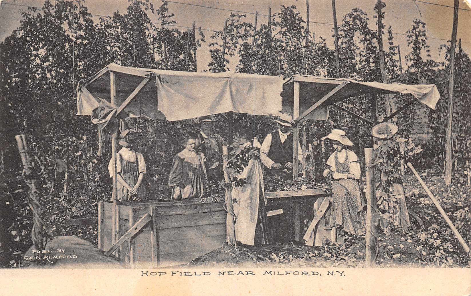 Milford New York Hop Field, B/W Lithograph Vintage Postcard U12260