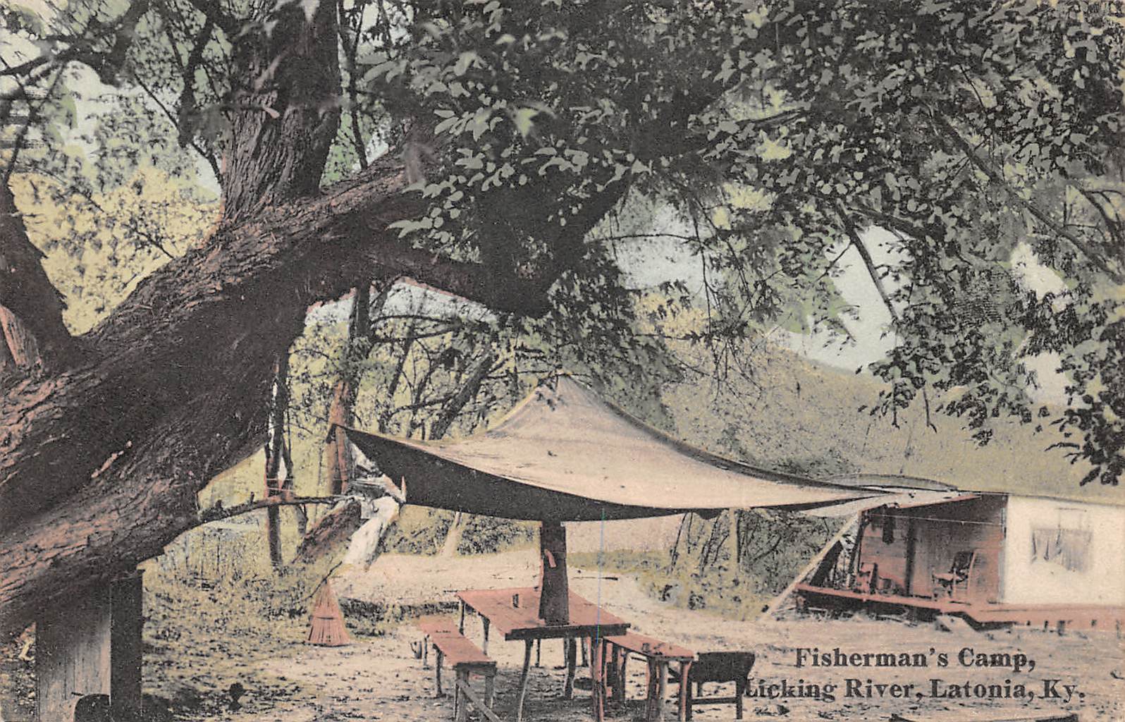 Latonia Kentucky Fisherman’s Camp, Color Lithograph Vintage Postcard U12262