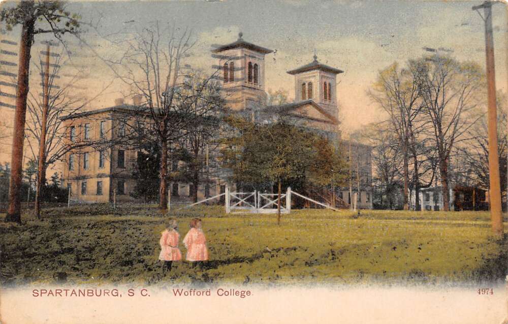 Spartanburg South Carolina Wofford College, Color Lithograph Vintage PC U15616