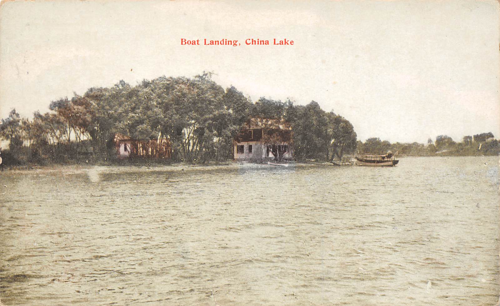 China Lake Maine Boat Landing, Color Lithograph Vintage Postcard U15623