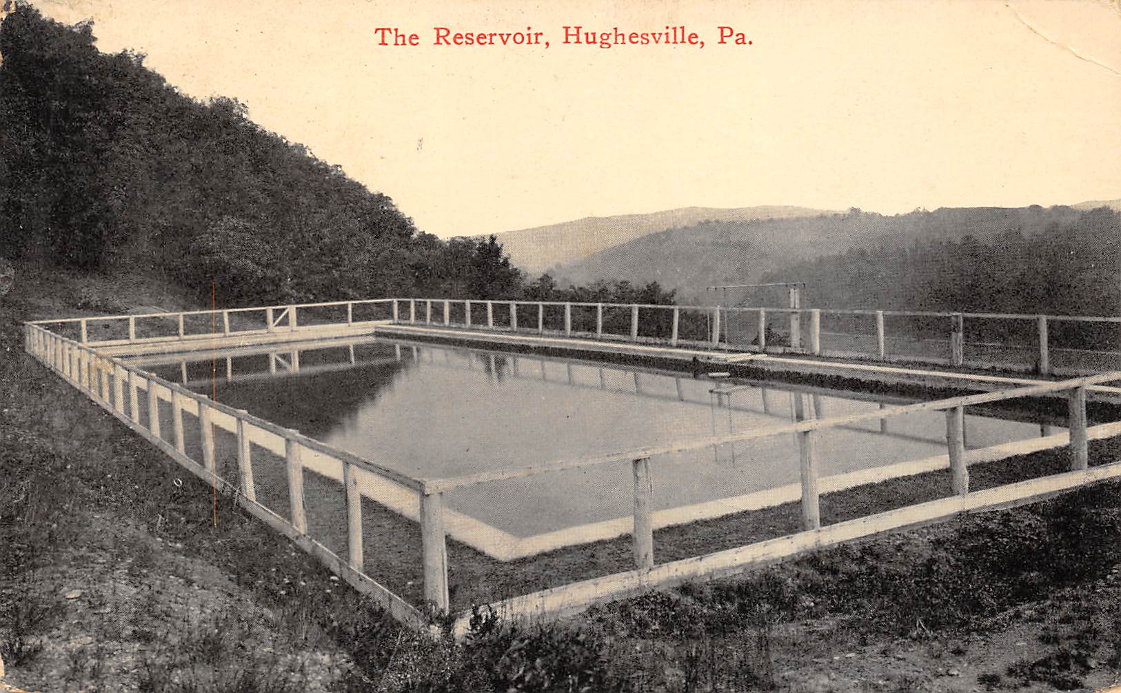 Hughesville Pennsylvania The Reservoir, B/W Lithograph Vintage Postcard U15634