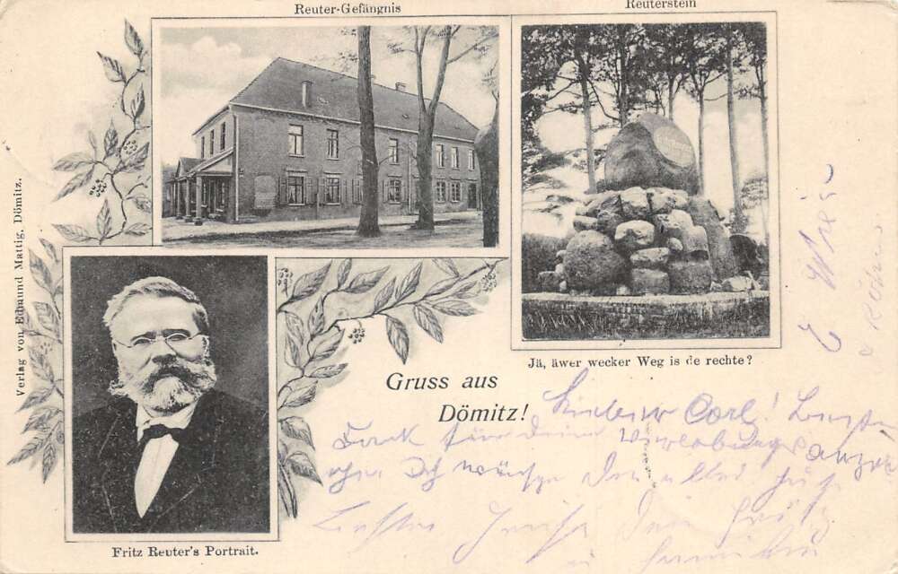 Domitz Germany Buildings Monuments Frizt Reuter Gruss aus Postcard AA108730