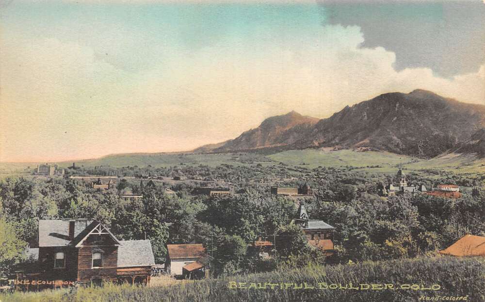Boulder Colorado Birds Eye View Hand Colored Vintage Postcard AA108734