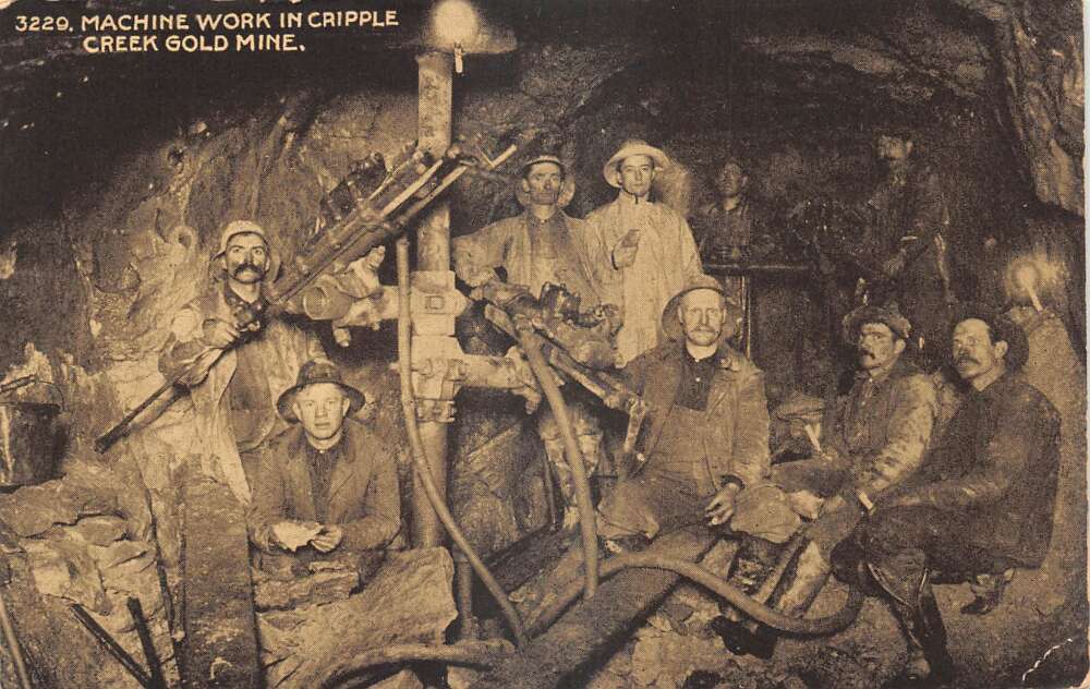 Creeple Creek Colorado Miners Machine Work in Gold Mine Postcard AA108736
