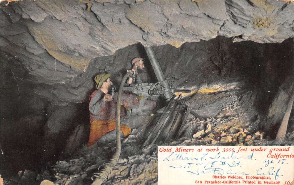California Gold Miners at Work in Mine Vintage Postcard AA108738