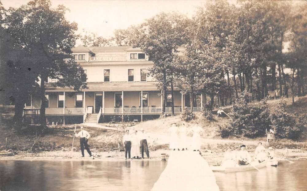 Crown Point Indiana Lake View Hotel Beach and Pier Real Photo Postcard AA108744